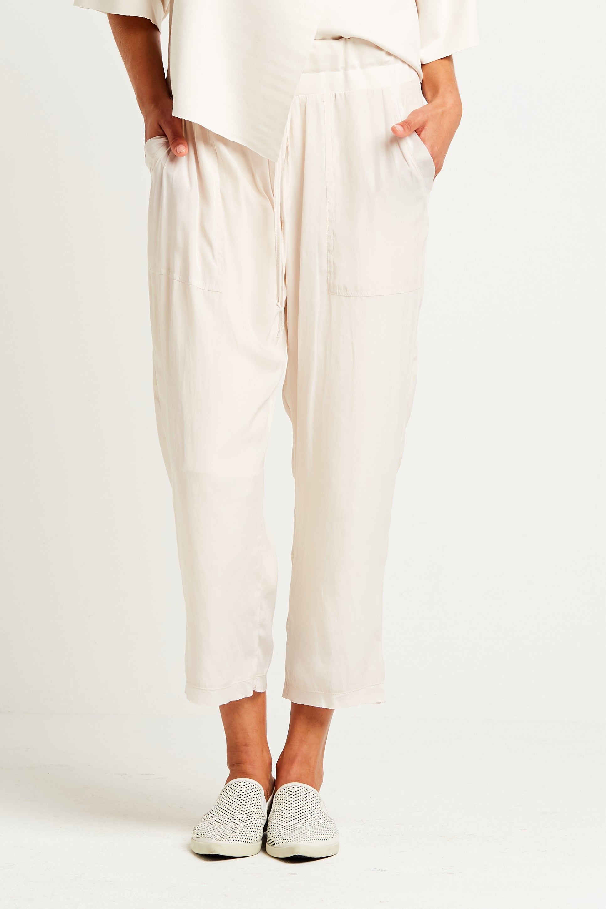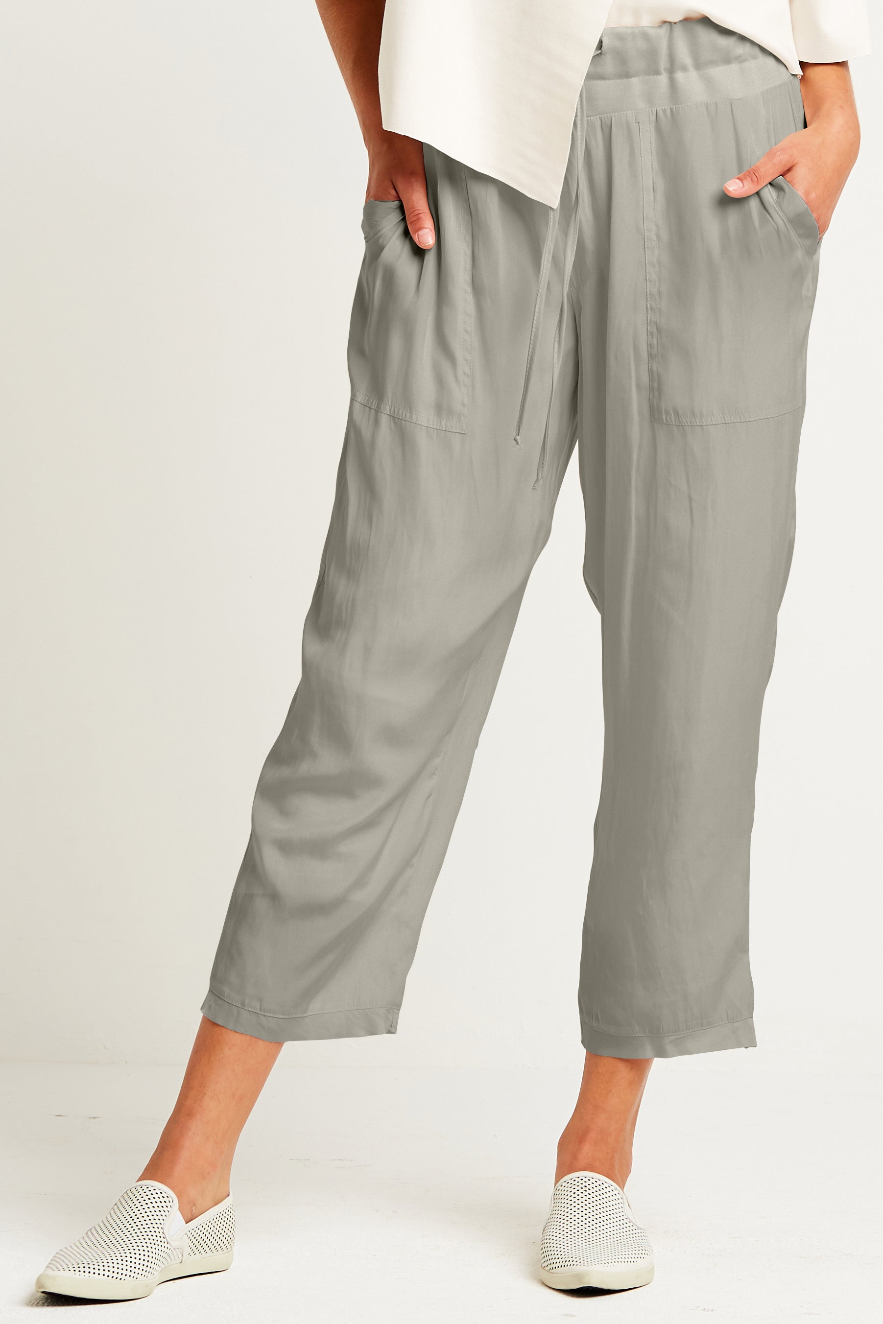 Chic meets athleisure! Dress-up casual sweatpants crafted in our luxe silk-blend make a statement! Style them right! Shop our washable silk fab top or scuba portrait collar top. Features include scuba waistband, tie closure and two front pockets.? ?